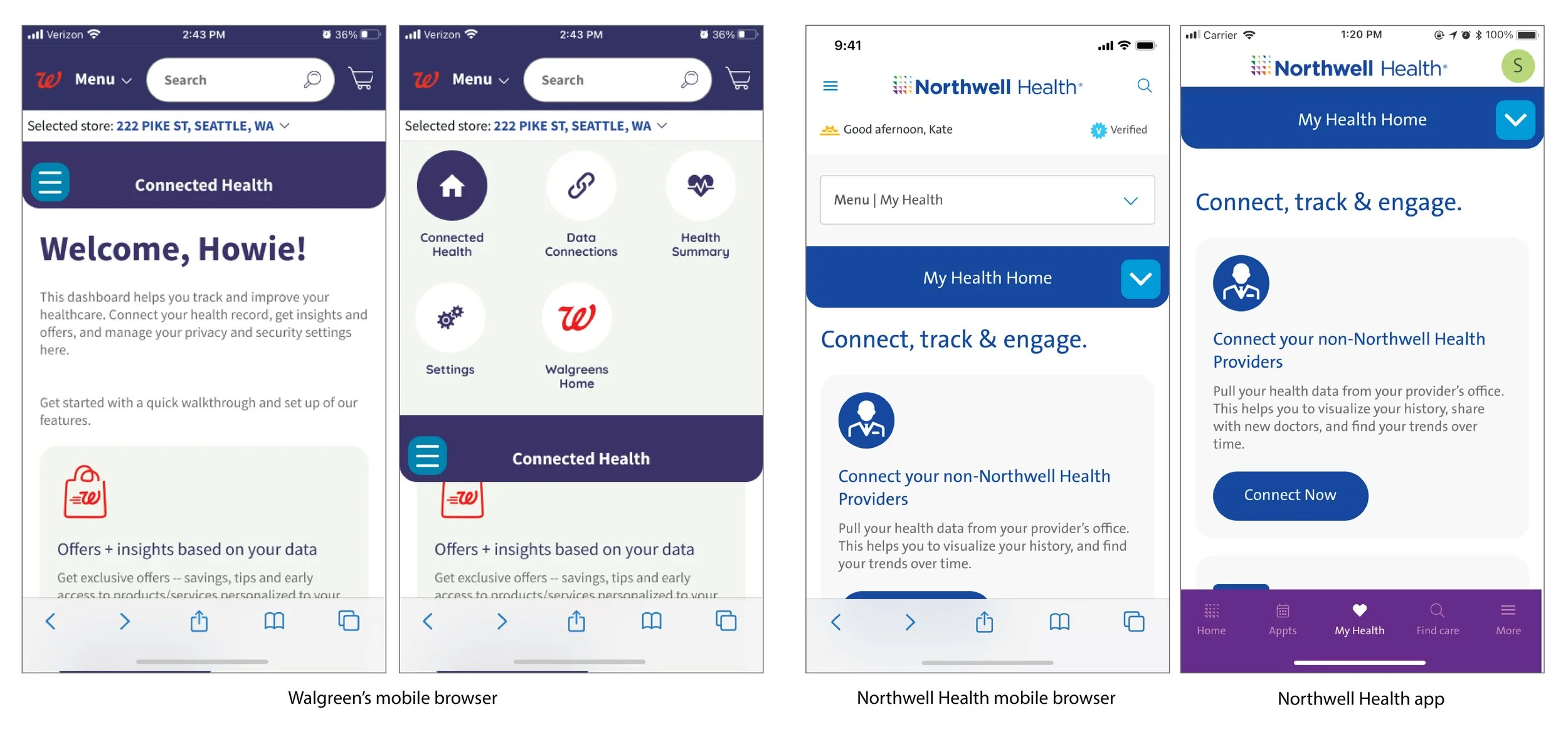 • Design & dev constraints — Navigational and technical limitations across platforms like Walgreens and Northwell